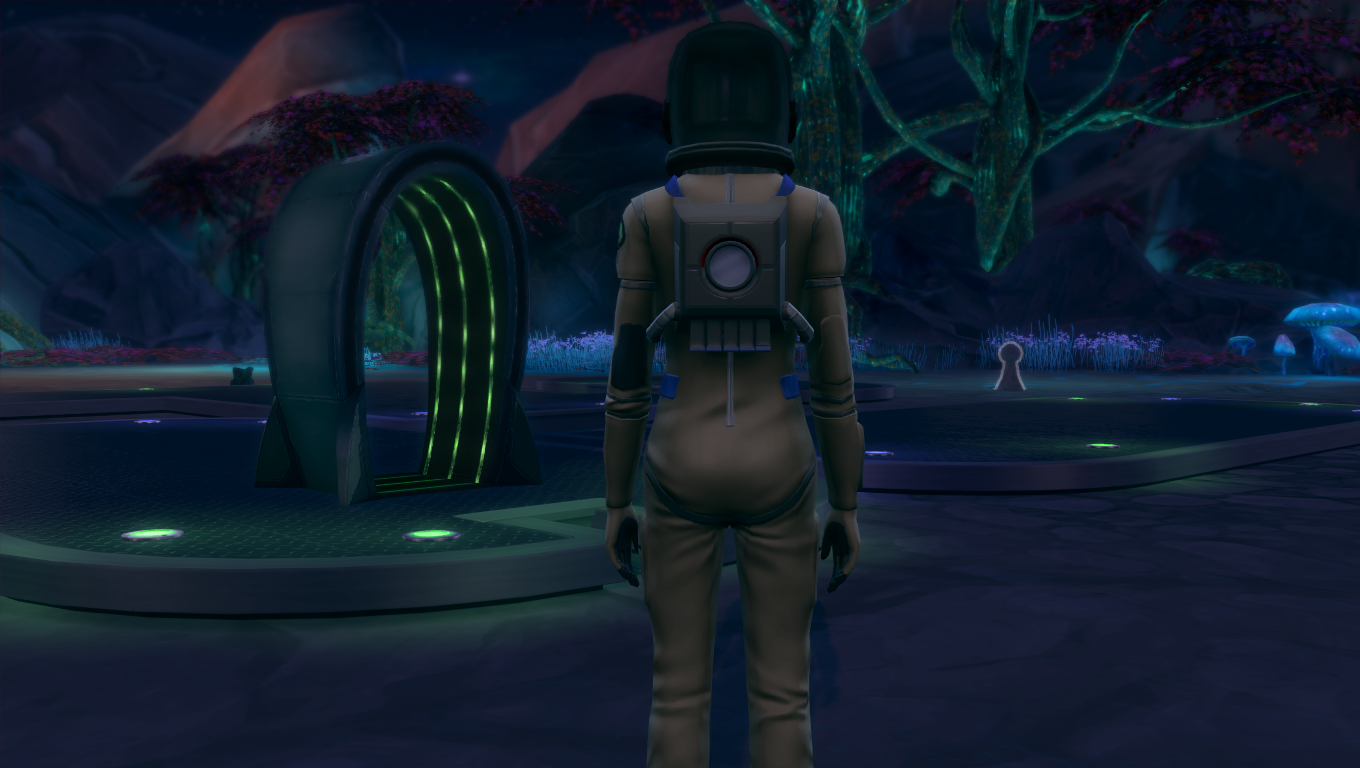 Depois de diversas horas decidi que precisava voltar para a casa. Fui até um portal que o meu amigo alienígena tinha me indicado. Ele me levaria até o portal dentro do meu foguete.